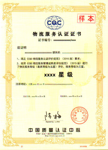 本文來源:驗廠之家 - 物流服務認證證書(CQC標準)
